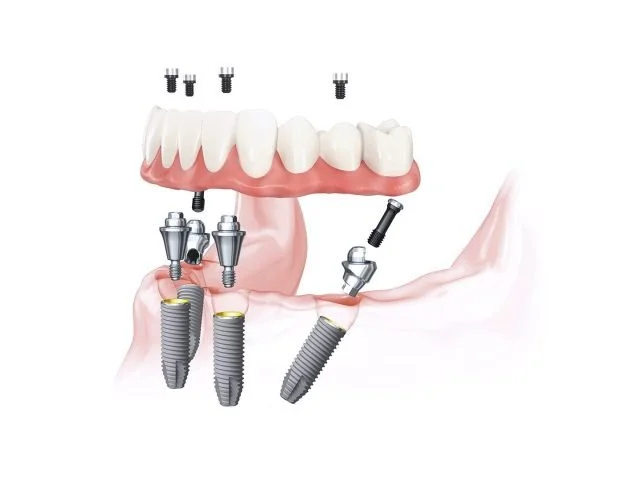 This innovative technique enables the replacement of an entire arch of teeth using only four implants, all completed within 48 to 72 hours.