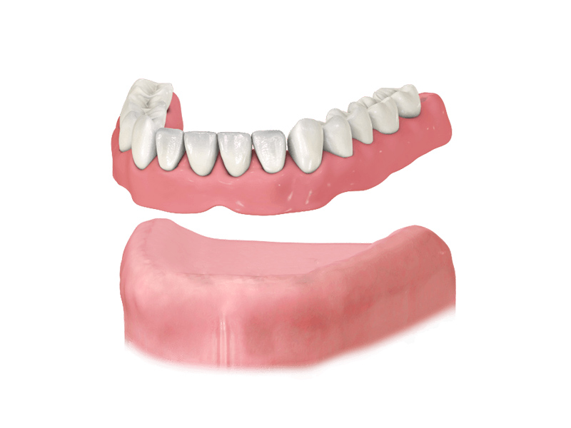 Suppose implantation is contraindicated (due to advanced age, dental hygiene problems, specific anatomical conditions, certain chronic diseases, etc.). In such cases, removable prostheses offer a suitable solution: they can significantly improve the quality of life compared to an edentulous state (toothlessness). No major oral surgery is required, which makes the procedure quick and painless. The new generation of dentures, manufactured with modern technology, look natural and, because they ideally support the muscles and lips, they fill in any sunken look of one’s face which may be caused by edentulism.